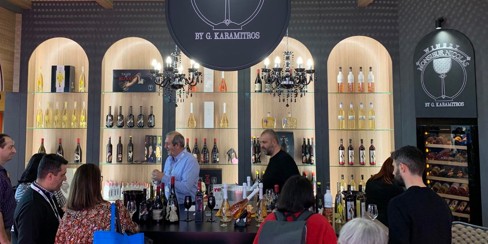 Ένα εκθεσιακό περίπτερο που δεν φιλοξενεί απλώς τα κρασιά, τα αφηγείται με την πρώτη ματιά.