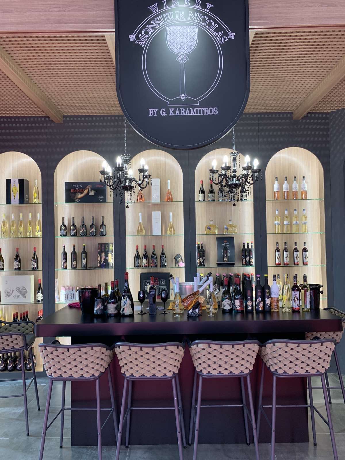 Διακριτική πολυτέλεια, αυθεντικότητα και σεβασμός στην οινική κουλτούρα μέσω ενός περιβάλλοντος εκλεπτυσμένου και premium αλλά ταυτόχρονα ζεστού, οικείου και φιλόξενου. Ξύλινες υφές, μεταλλικές λεπτομέρειες, ήπιος σκηνογραφικός φωτισμός και δομές που θυμίζουν boutique wine gallery καθώς ένα εντυπωσιακό product placement αναδεικνύει τις φιάλες των κρασιών ως συλλεκτικά αντικείμενα. Οι επισκέπτες κάθονται αναπαυτικά γύρω από ένα μεγάλο τραπέζι για να απολαύσουν το wine tasting και να έρθουν σε επαφή με τον Οινοποιό και την ομάδα του.
